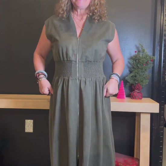 Discover the Annabelle Corduroy Dress—a playful twist on classic style. Featuring a flattering V-neck and easy zipper front, it’s effortless to wear. The drop shoulders and cap sleeves add a relaxed vibe, while the smock waist gives shape without sacrificing comfort. Practical pockets complete the look, perfect for keeping essentials close on any adventure.