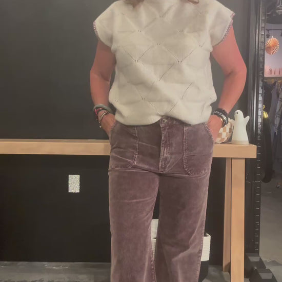 Step out in style with these Corduroy Trousers in Washed Choco. Featuring a comfy wide-leg cut and handy side pockets, they blend vintage charm with modern ease. The soft, vintage wash adds a touch of retro flair perfect for your playful, laid-back looks.