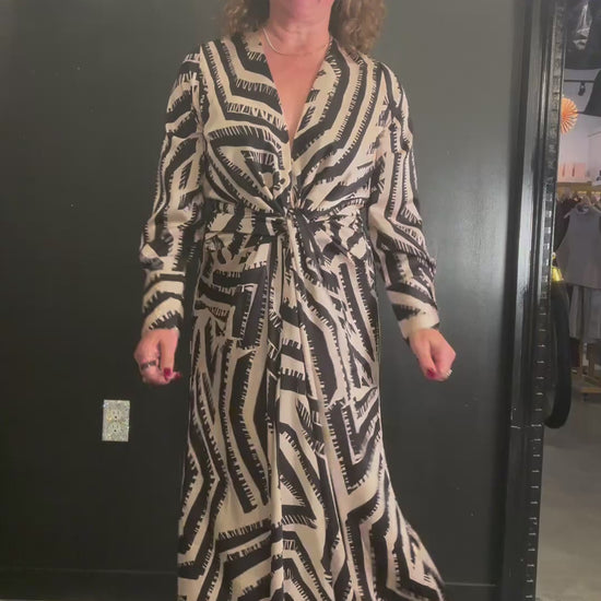 Turn heads in the Off Limits Midi Dress, featuring a bold abstract print that sparks curiosity. The playful twist waist detail flatters your silhouette, while the plunging neckline adds a flirty touch. Perfect for making a statement at any event with effortless charm.